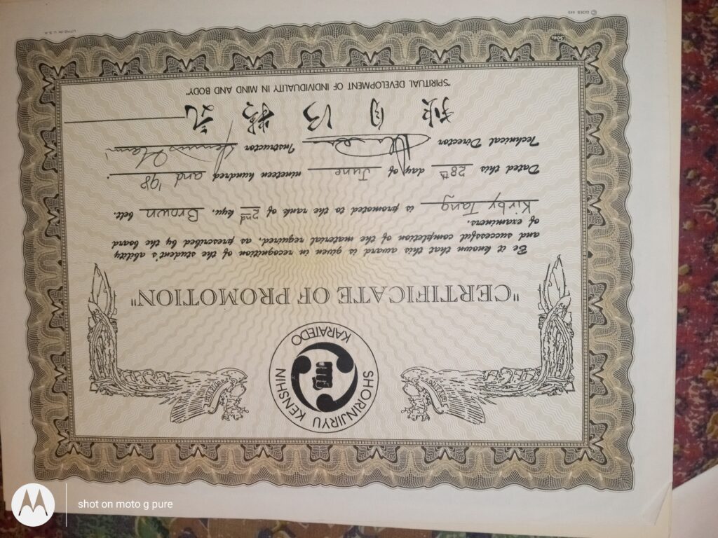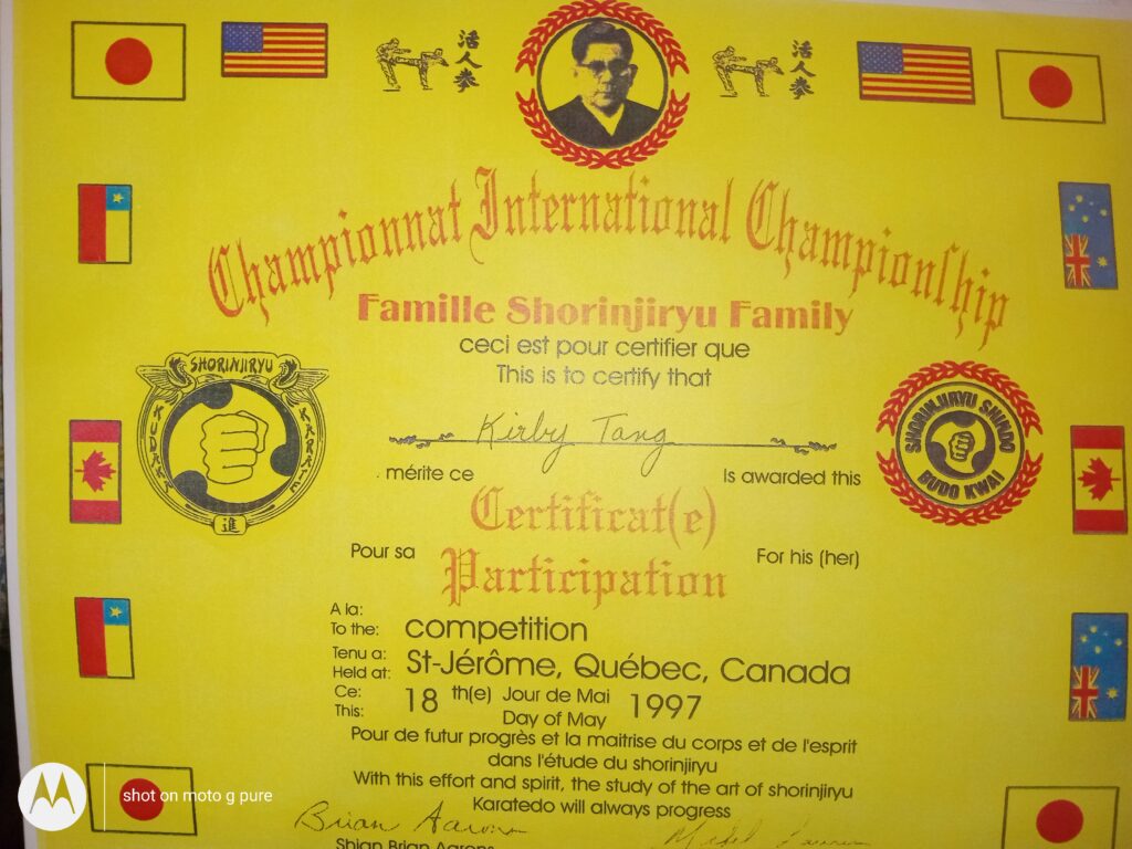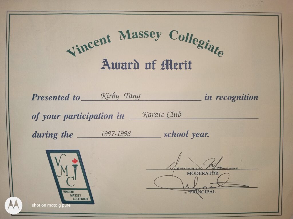 Proof of Kirby Kar Tang, me, as a student of Karate, from the year 1996 -1998